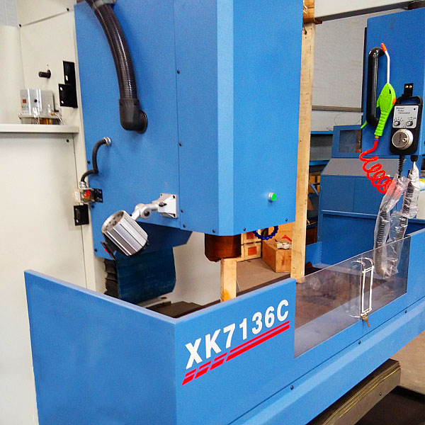 XK7136C床身式數控銑床![]() 本機床爲數控床身銑床,具有較強的承載能力,三方向導軌均爲淬火硬軌,導軌寬、跨距大,結構及外形尺寸緊湊合理,主軸爲變頻電機通過同步帶驅動。可銑削、鑽孔、擴孔及鉸孔等多種功能,能夠實現對盤類、闆類、殼體、模具等複雜、高精度零件的加工,适於多品種各中、小型零件的平面、斜面、溝槽、孔等多種工序加工,是機械、電子、儀器、儀表、模具、汽車等行業的理想加工設備;可選配第四軸,選配第四軸可實現四軸四聯動,電機功率爲0.75kW(2.4 N.m)分度頭型号爲FK15125, 擴大瞭機床的加工範圍。 ![]() 1、 底座、立柱、工作台、中滑座、升降滑座等主要構件均採用高強度材料鑄造而成,並經人工時效處理,保證機床長期使用的穩定性,爲機床性能的穩定性提供瞭保障。 2、採用高速、高精度、高剛性主軸單元,承載能力強,最高轉速可達4000rpm; 3、工作台X 向行程達900 mm,Y、Z向導軌均爲寬矩形滑動導軌,並經超音頻淬火及精密磨削。滑動導軌面精密刮研,並貼覆複合PTFE材料,配合自動強制潤滑,減小進給運動的磨擦阻力,減小低速爬行,提高機床精度壽命。 4、 X、Y、Z三方向進給均採用高精度、高強度滾珠絲杠,伺服電機驅動,確保機床的定位精度。 5、 導軌、滾珠絲杠採用防護裝置,保證絲杠和導軌的清潔,確保機床傳動及運行精度。 6、 Z向加配重塊平衡裝置,保證主軸升降運動平穩、順暢。 7、 電動潤滑裝置可對縱、橫、垂向的絲杠及導軌進行強制潤滑,減小機床的磨損,保證機床的高效運轉;同時,冷卻系統通過調整噴嘴改變冷卻液流量的大小,滿足不同的加工需求。 8、 機床操作系統通過支臂懸挂在機床的右上方,符合人體工程學原理,操作箱可旋轉一定角度,操作方便、可靠。 标準配置:1.KND-1000M數控系統 2.氣動松拉刀 ![]() 1.X/Y/Z軸可根據用戶要求加大行程 2.X、Y、Z三軸超寬硬軌,高強度樹脂砂鑄件,以保證機床加工剛性。 3.外置RS232通訊接口 4.分離式手輪 5.氣動松拉刀系統 6.自動間歇潤滑 7.冷卻系統採用大流量高揚程水泵,保證在高速切削下具有充分冷卻 ![]() ![]()