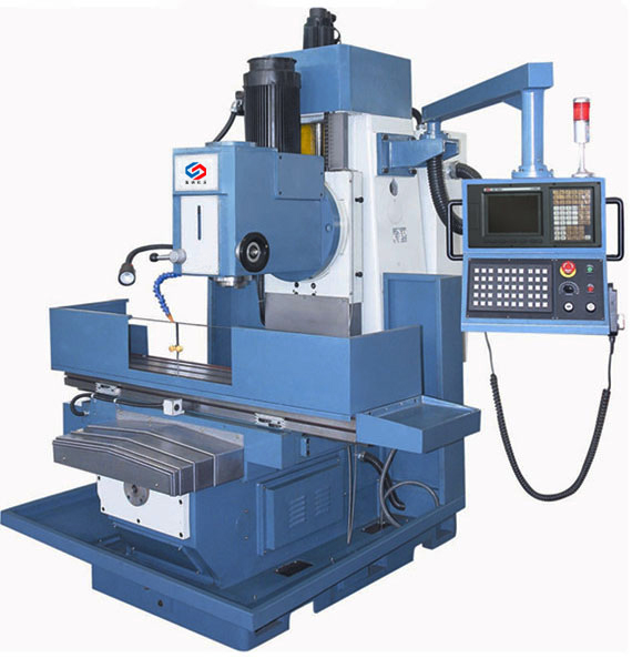 XK7150數控床身銑床 Xk7150數控床身銑床是我公司根據普通數控銑床受行程限制,穩定性不好,動力不足等問題而自行設計研發的超大行(1400*500)超大動力(主電機11kw),自重大(淨重4900KG),載重大(一體加強鑄鐵床身),穩定性好(高頻淬火矩形導軌)的床身式數控銑床! 1.使用米漢納鑄鐵,精度更高,穩定性更好2.採用矩形導軌剛性好 3.工作台面及導軌超音頻淬火 4.機頭可左右旋轉30度 5.進口變頻原件及變頻技術使主軸調整更方便 6.強力機械主軸,更适合強力切削 7.超大x向行程,1050mm/1400mm ![]() ![]()