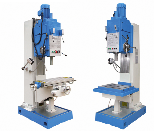 Z5150B立式鑽床 立式鑽床可以自動進給,它的功率和機構強度允許採用較高的切削用量,因此用這種鑽床可獲得較高的勞動生産率,並可獲得較高的加工精度,立式鑽床的主軸轉速、進給量都有較大的變動範圍,可以适應不同材料的刀具在不同材料的工件上的加工。並能适應鑽、锪、鉸、攻螺紋等各種不同工藝的需要,在立式鑽床上裝一套多軸傳動頭,能可時鑽削幾十個孔,可作爲批量生産的專用機床使用。立式鑽床作爲鑽床的一種,也是比較常見的金屬切削機床,有著應用廣泛,精度高的特點。适合於批量加工。可以适應不同材料的刀具在不同材料的工件上的加工。並能适應鑽、锪、鉸、攻螺紋等各種不同工藝的需要。常用於機械制造和修配工廠加工中、小型工件的孔。 1. Z5140B、z5150系列方柱立式鑽床是萬能型通用機床。機床的最大鑽孔直徑爲Z5140B:¢40mm;Z5150B:¢40mm(在50-60kgf/mm的鋼材上,在布氏硬度HB=220的鑄鐵上,鑽孔能力分别爲¢40mm、¢50mm)2.Z5140B、z5150B爲固定工作台;Z5140B-1、Z5150B-1爲十字工作台。 3.本機床除用於鑽孔外,還可以擴孔、鑽沉頭孔、锪端面、鉸孔、攻絲等 4.本機床效率高、剛性好、精度高、噪音低、變速範圍廣。如工作台爲十字工作台的,則工作台能縱橫、升降手動進給。 5.操縱集中,外形新穎,使用維修方便,适用於修理工具等單件小批生産的車間,若配以鑽夾具,也适用於成批生産的車間。 ![]() ![]()